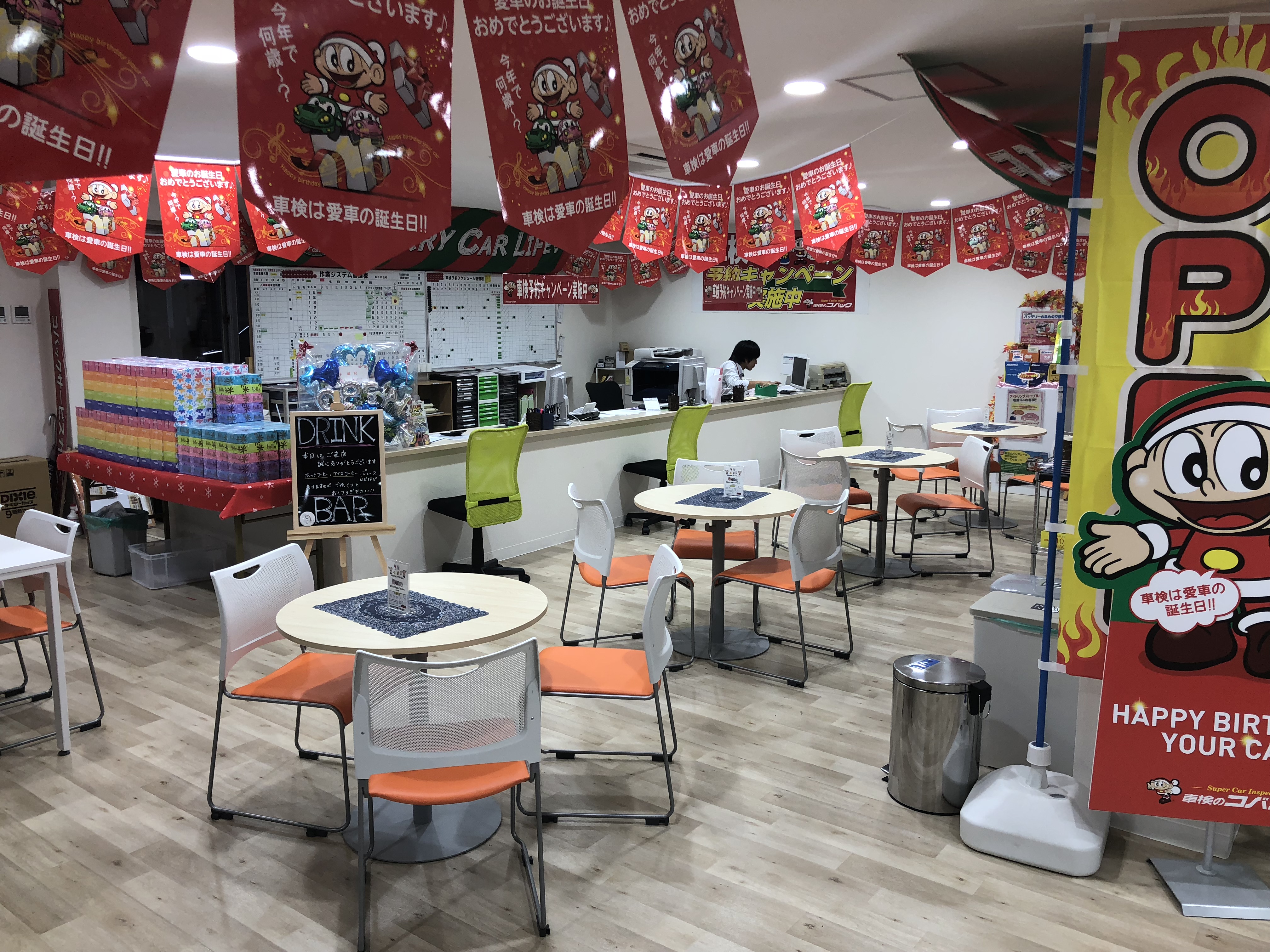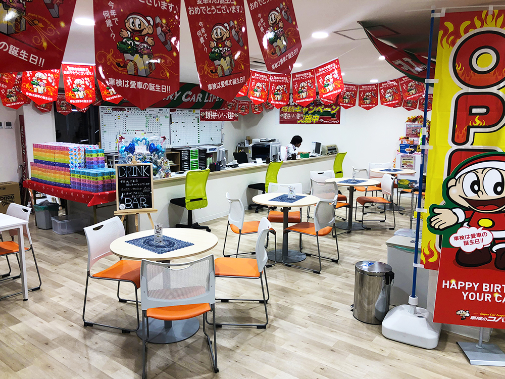 受付で車検のご案内。